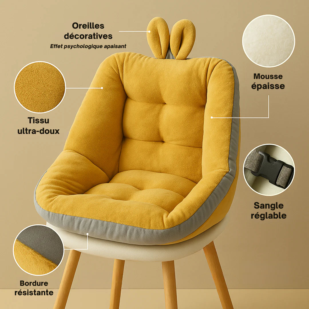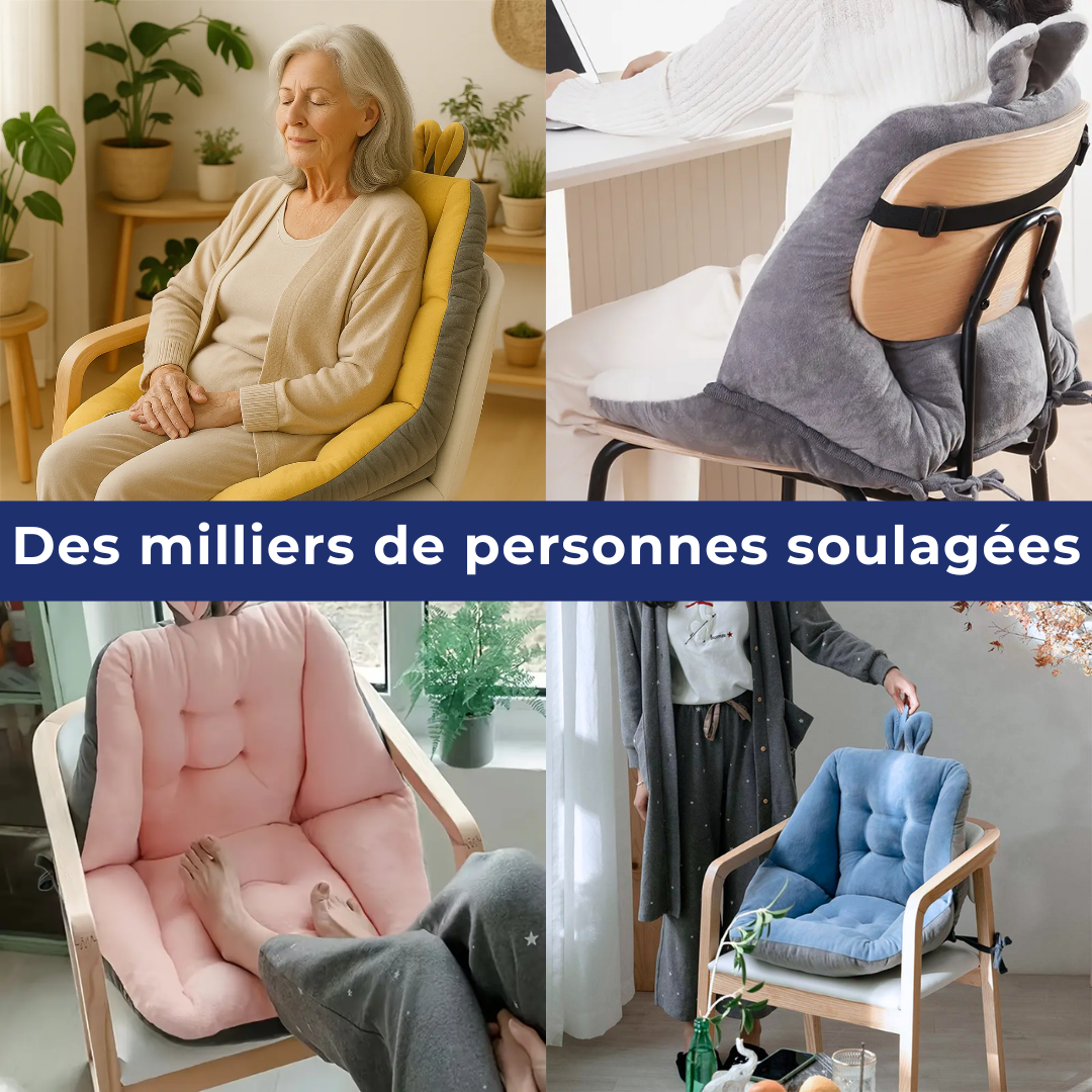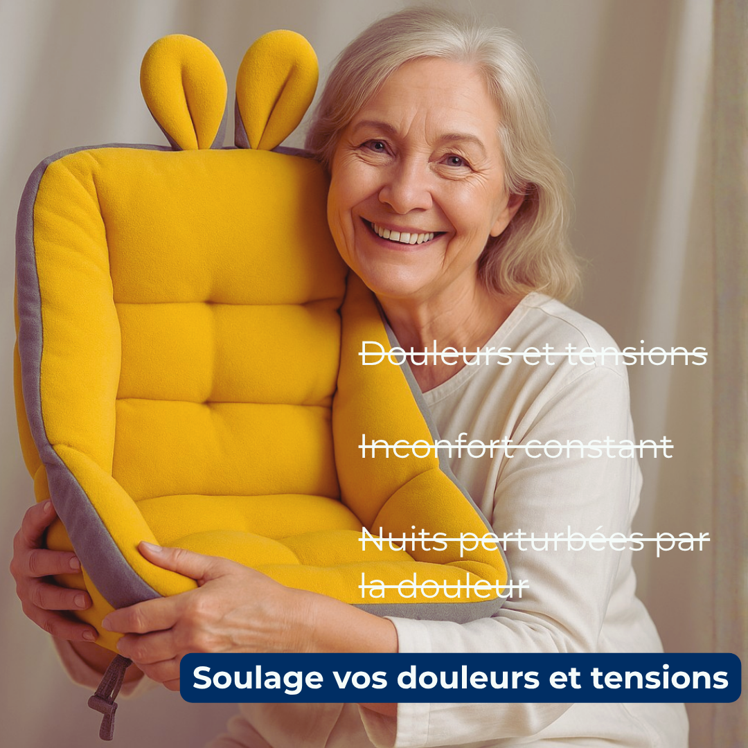 Bureaustoel, fauteuil, autostoel of zelfs kruk – dit kussen past overal en eenvoudig te installeren. Neem troost mee, waar je ook gebogen bent.