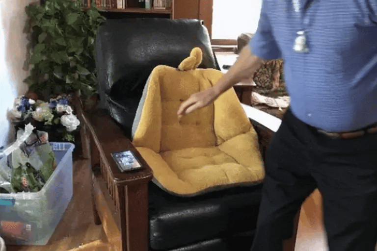 "Het meeste dat we kunnen zien is dat het over mijn stoelpoten gaat. Nu heb ik dit kussen en dat is een wereld van verschil."